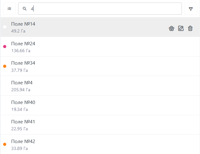 1. На странице Поля нажмите на иконку в строке необходимого поля в списке или в меню поля на карте.